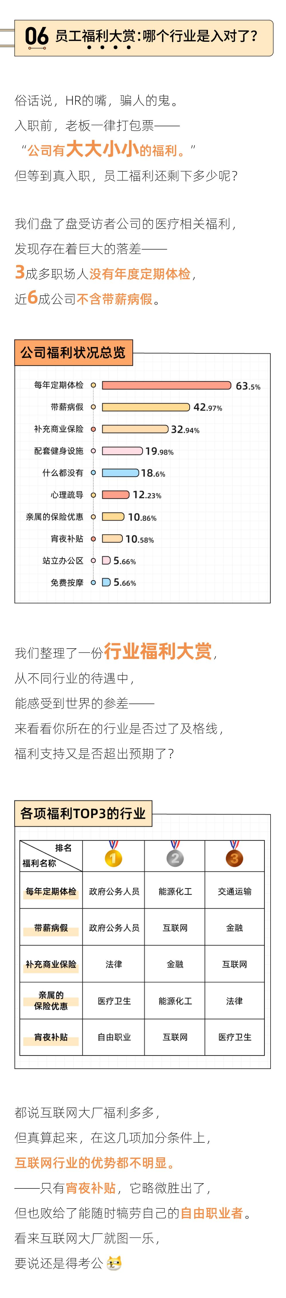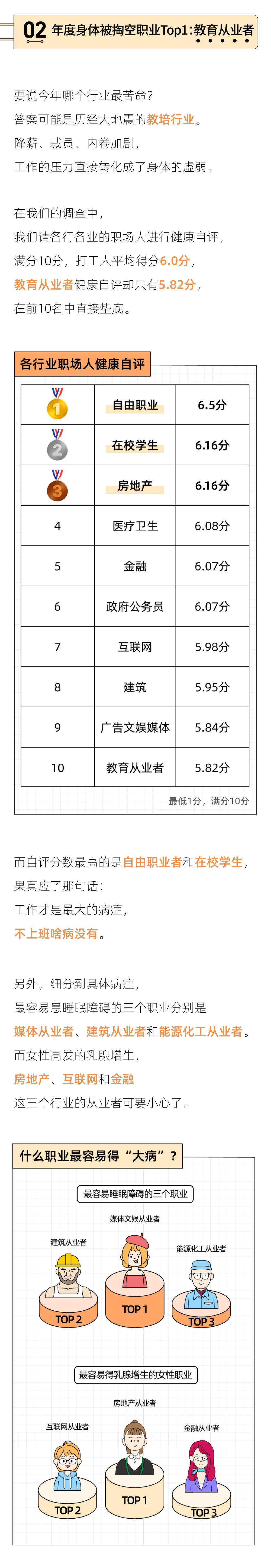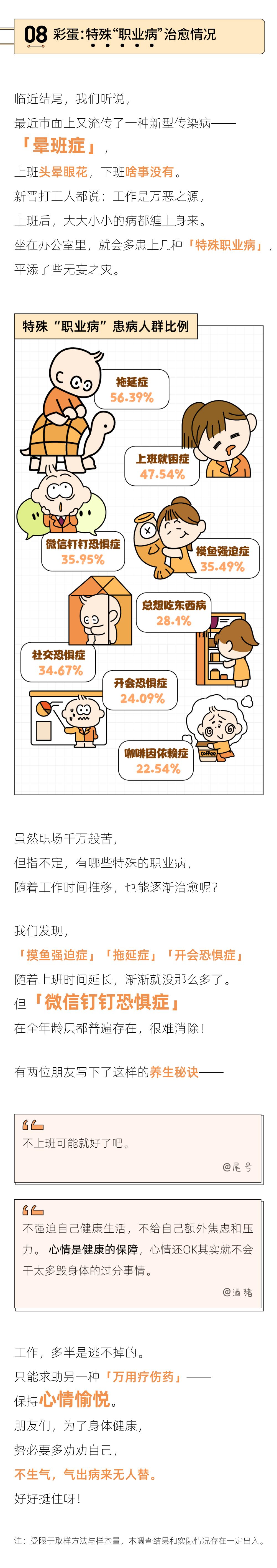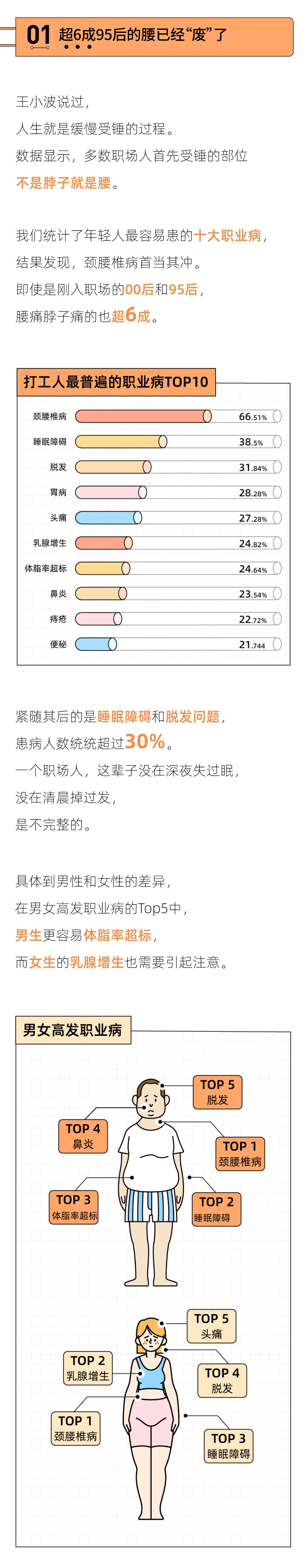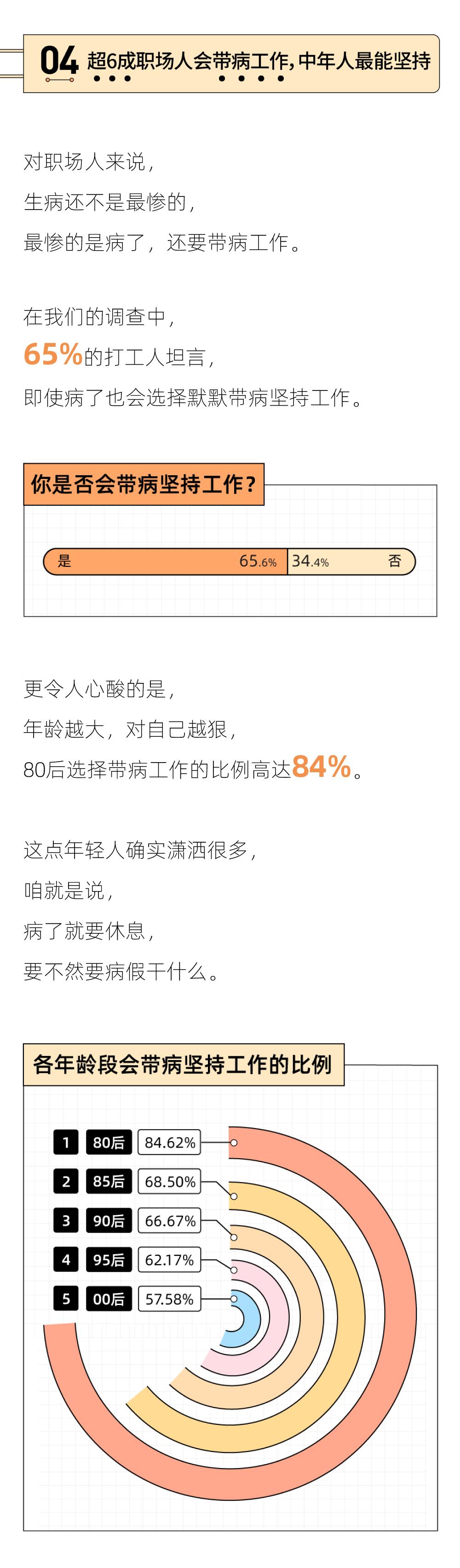 我们的身体并非不知疲惫、持续运转的机器,零件破损无法替换,受到伤害也是不可逆的。这份职场健康报告,不是为了徒增焦虑恐慌,只是希望提醒你,在为了生计奔波、日夜兼程时,在为OKR的百分比挣扎时,也能偶尔放慢脚步,审视一下——自己的身体是不是已经被过度消耗了?
