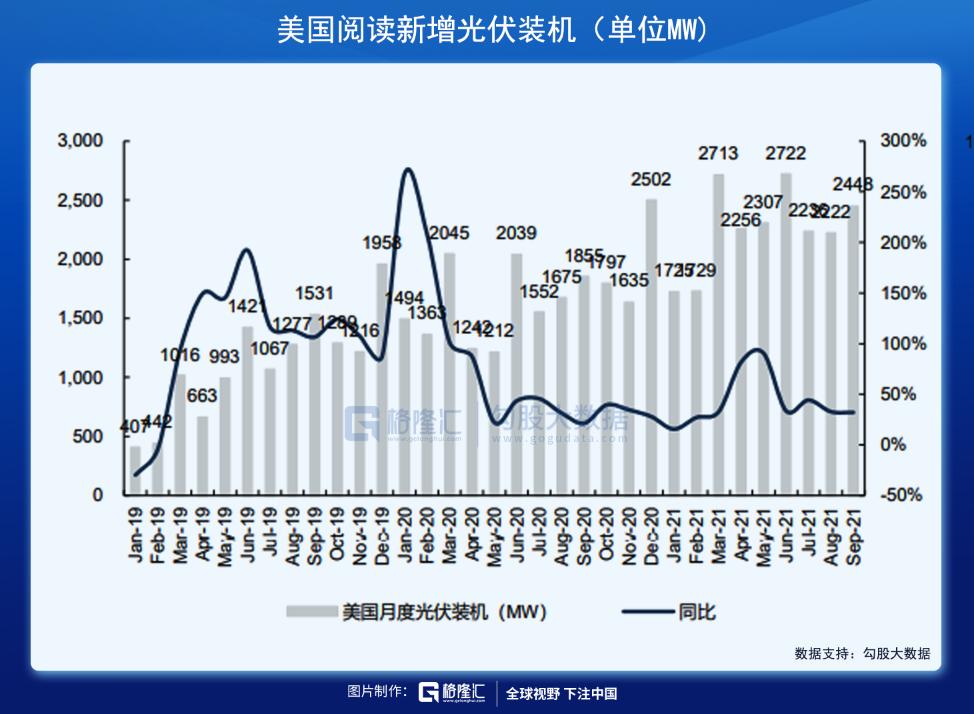 自拜登就任美国总统后,便立即重返《巴黎协定》,并宣布在光伏产业上加大投入,给予相应的资金、税收、基建与劳动力上的支持。美国能源信息署数据显示,今年1-9月,美国新增装机20.4GW,同比增加41%。