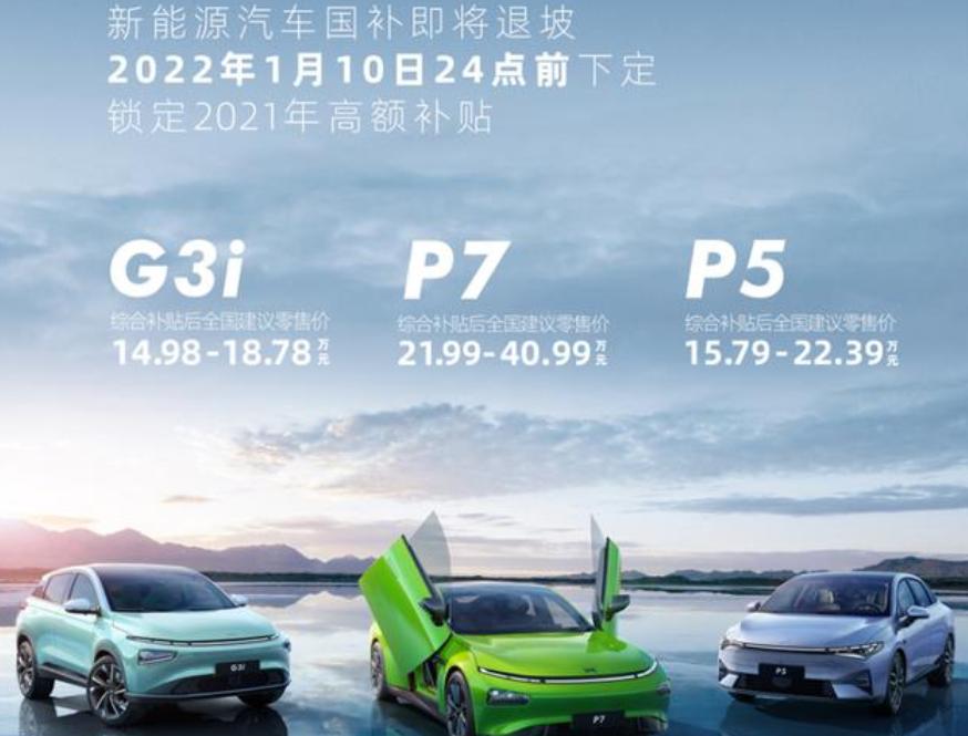 小鹏则在12月24日发布政策:1月11日前下定,即可享受2021年补贴标准,包含在售的全系车型。