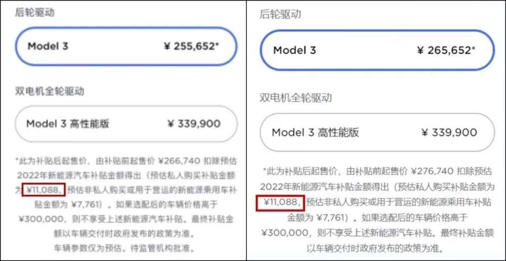 而且这一点,从其官网前后两次涨价后的预估补贴金额也能看出来(特斯拉官网价格并非正式售价,而是预估售价),都是11088元,这次涨价并没有对该数字进行调整,说明跟退补无关。