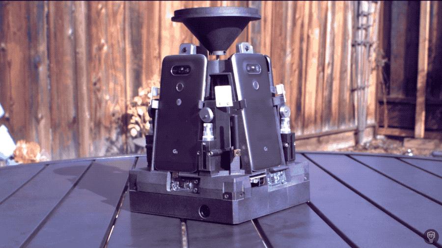 为了收集用户体验数据欣赏中招人的惨样,小马哥在装置4面都放了旧手机。