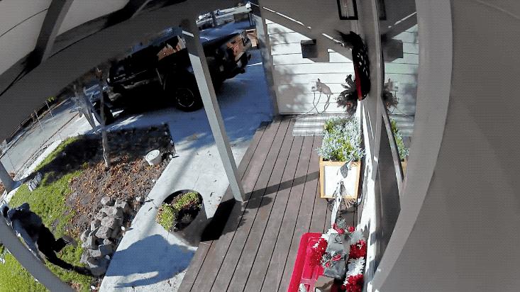 瞧,一个“小贼”光天化日之下,明目张胆地顺走别人家门口的快递: