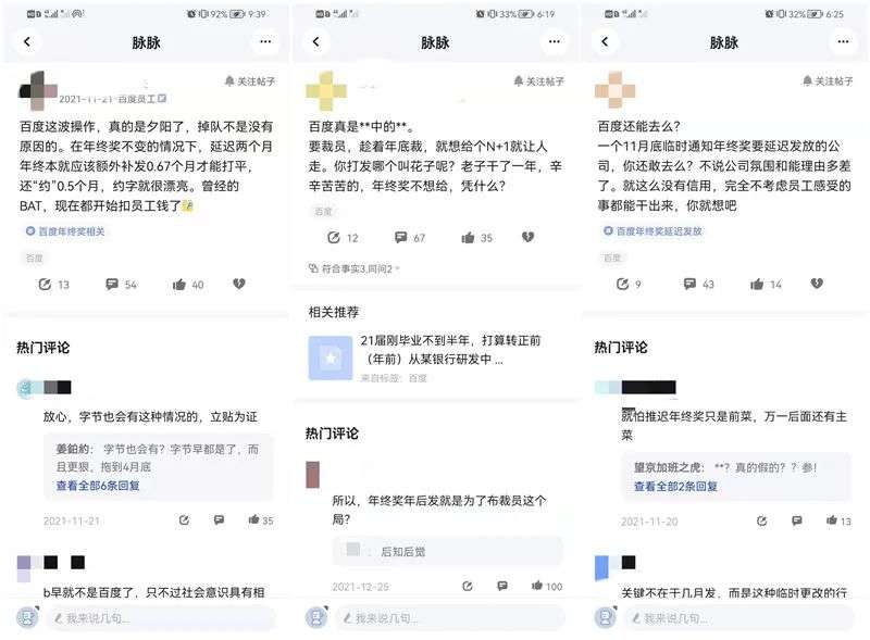根据社交平台爆料,百度11月底临时通知年终奖延迟发放。这让原本想年前拿到丰厚年终奖,安心度过新年的员工,迎来一盆冷水。根据此前网上流传的资料显示,百度年终奖一般在1月发放。有员工表示,关键不在于几月发放,而是通知的时间。