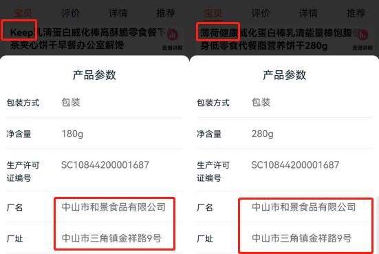 在食品类产品中,Keep的产品差异化愈发不明显,甚至有消费者发现,薄荷健康的产品与Keep的产品似乎来自同一个工厂,除了牌子,口味、包装风格等均“像素级”相似。贴牌的Keep成了健身届的“三只松鼠”,品控这一老生常谈的问题再次出现。