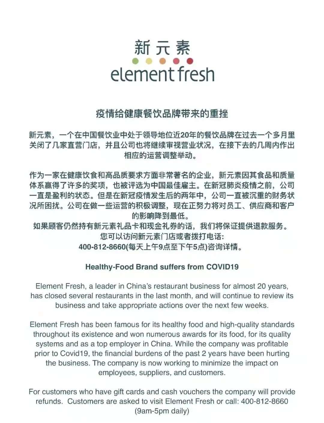 是什么让这家老品牌,写下了这封“写给新元素粉丝的信”。打开这份来自12月20日的推送:“疫情给品牌带来了重挫,在过去的一个多月里,关闭了几家直营门店,并且公司也将继续审视营业状况,在接下去的几周内作出相应的运营调整举动。”