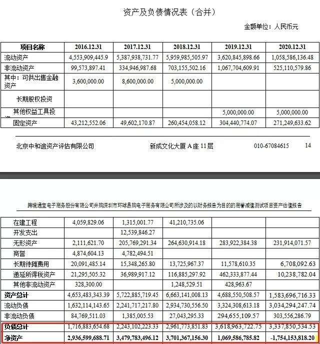 根据报告显示,环球易购2020年负债总计33.38亿,净资产总计-17.5亿。