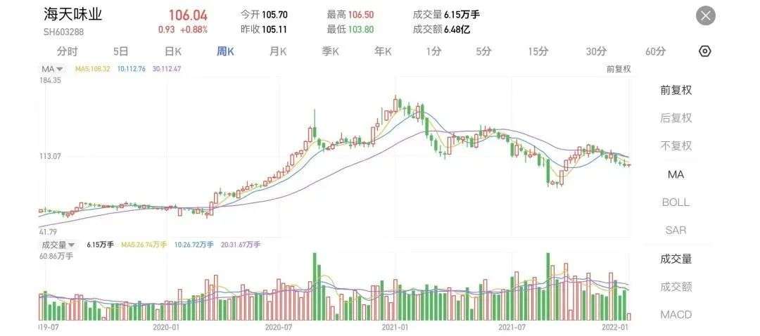 就拿海天味业来说,2021年其股价累计跌幅超过30%。