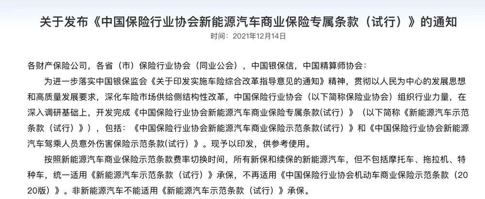 关于新能源汽车保费上涨这件事情的开始还要回到2021年12月14日。