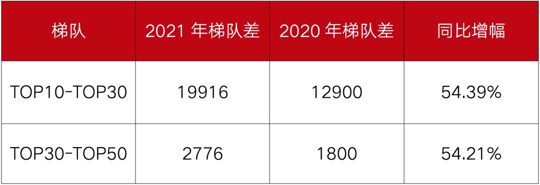 注:“梯队差”即上一梯队门槛与下一梯队门槛值之差