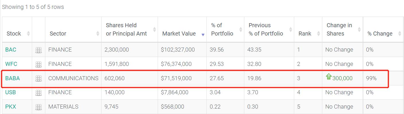 华尔街见闻稍早前文章曾提及,Daily Journal自去年一季度起建仓阿里,截至去年3月末持有阿里巴巴165320股,且该股在其投资组合中的占比高达19%。建仓原因是其需要一些证券作为现金等价物,这些现金等价物通常是美国国债,但由于美债的投资回报率太低,公司转而投资了普通股。