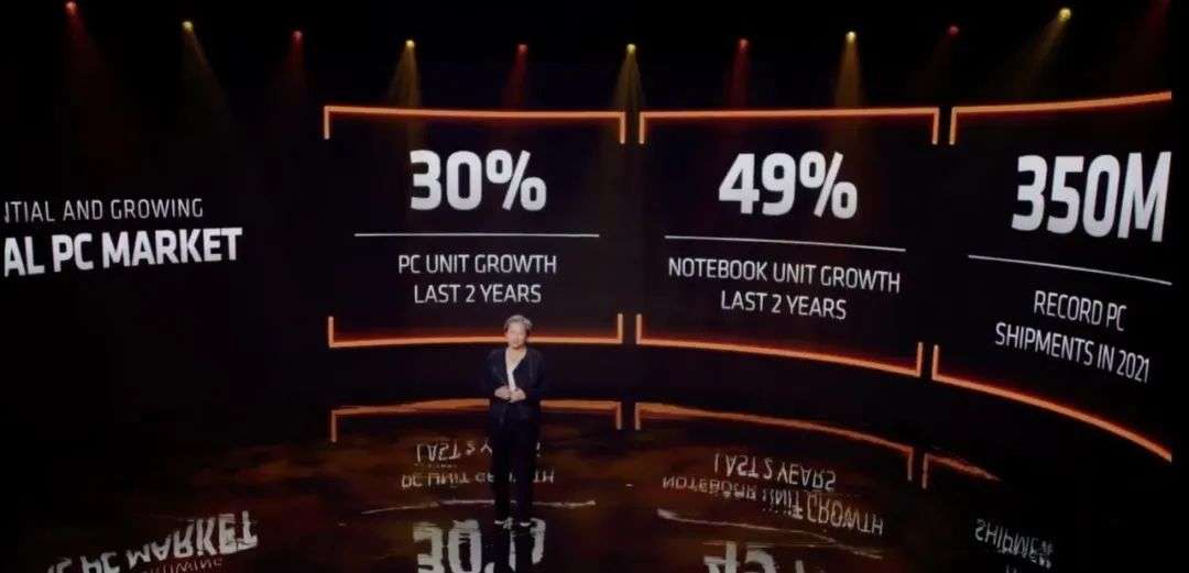 过去两年,PC出货量增长幅度达到了30%,其中笔记本电脑的出货量同比增长更是达到了近50%,2021年,PC出货量规模大约在3.5亿台左右。针对这一持续增长的市场,AMD今天推出了众多重磅新品。