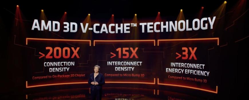 在去年的Computex大会上,AMD首次展示了3D V-Cache技术,该技术的工艺密度相比传统方案要高出15倍左右,而功耗不到三分之一,连接密度更是提升了超过200倍。