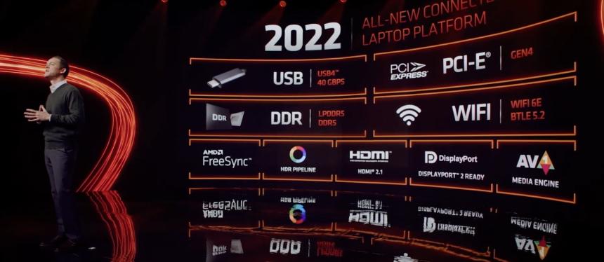 RDNA2移动GPU采用台积电6nm工艺制造,在提高性能的同时降低了功耗。当然,锐龙6000系列移动处理器也支持DDR5内存、USB4以及Wi-Fi 6E等新特性。