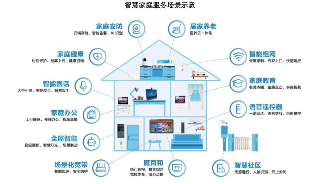 针对家庭市场,中国移动持续加大家庭宽带基础设施建设投入,将智慧家庭应用场景延伸至家庭安防、智能控制、社交沟通、健康养老、教育办公等众多领域。
