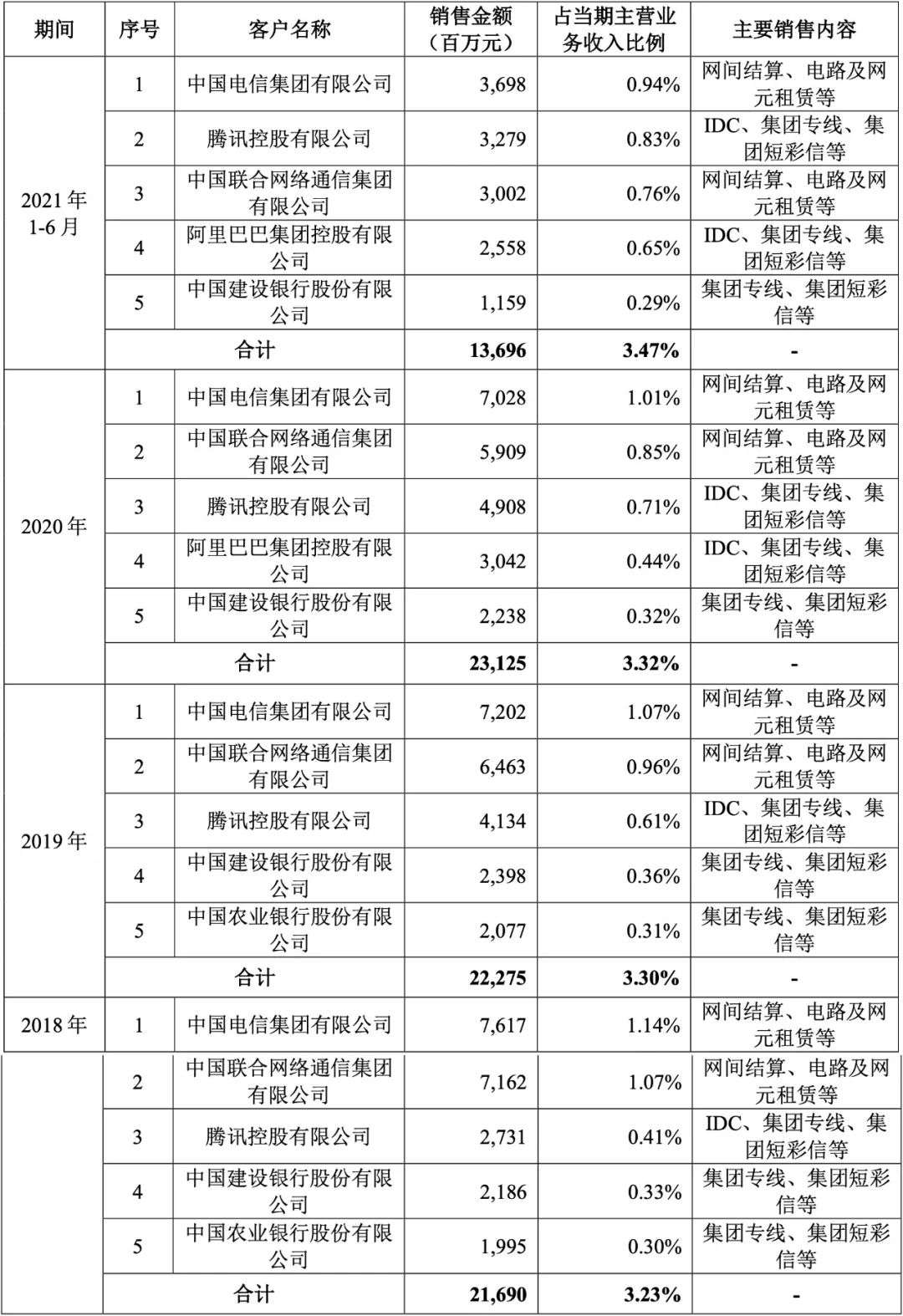 中国移动业务开展过程中会涉及网间结算和电路及网元租赁,因此报告期内前五大客户和供应商中存在中国电信集团有限公司和中国联合网络通信集团有限公司既是客户又是供应商的情况。