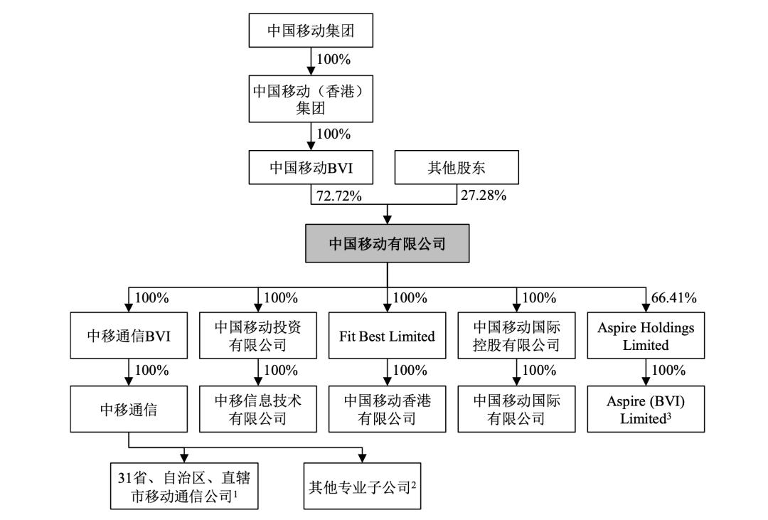 中国移动集团通过其全资子公司中国移动(香港)集团持有中国移动BVI 100%的股份,为实际控制人。中国移动集团成立于1999年7月22日,国务院国资委和全国社会保障基金理事会分别持有该公司90%和10%的股份。