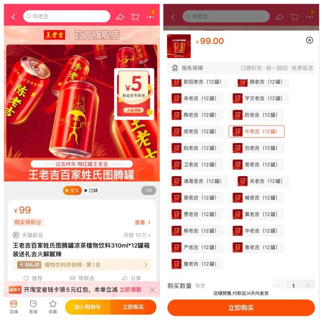 目前一共上线了112个姓氏的图腾罐,只要在淘宝王老吉旗舰店下单即可购买,但因为人数抢购人数过多,目前下单至少要等到过年前才能发货了。