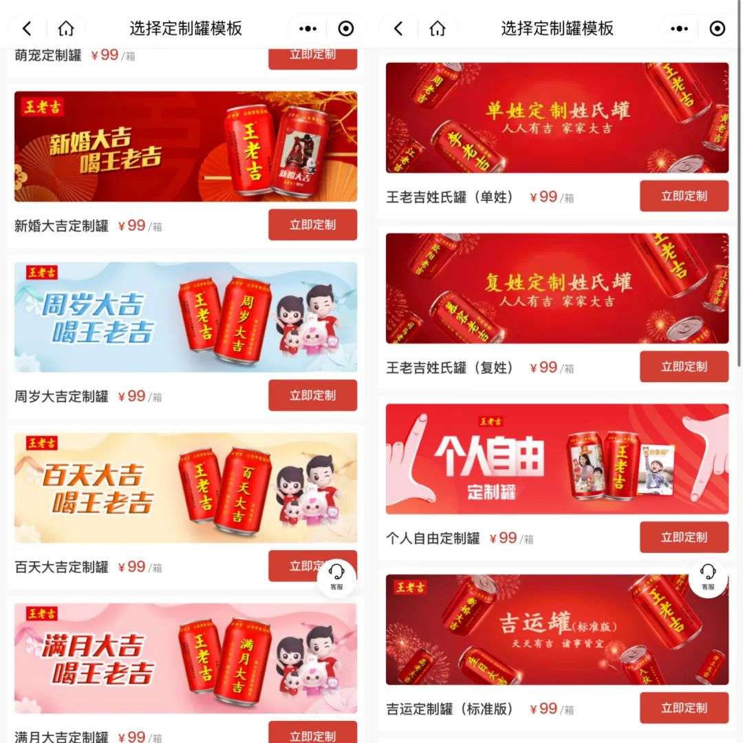在王老吉的官方小程序上面,大家就可以自己定制,不需要排队预约。