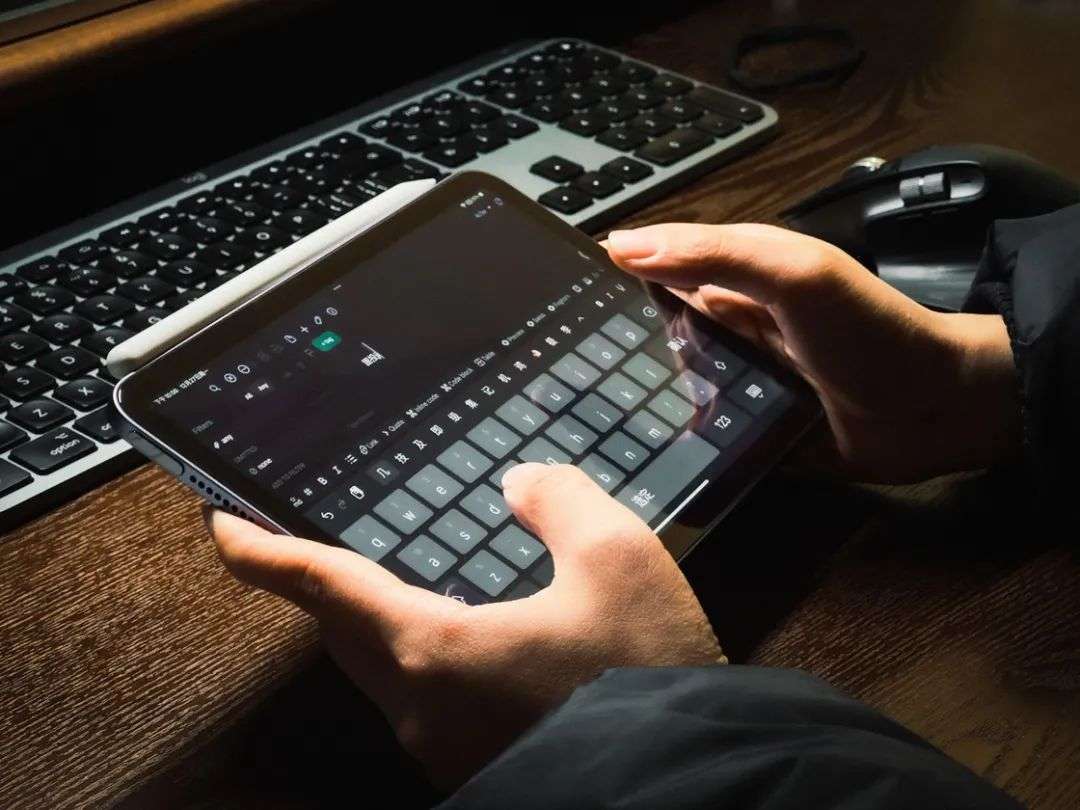 在iPad mini 6 上打字,无论是横屏还是竖屏,我都觉得应付自如。如果你的手比较小,还可以尝试双指捏合,把键盘缩小成九宫格形态,这样就可以用右侧的大拇指来打字,和手机的体验类似。双指向外拉伸把键盘一分为二进行输入也是一个不错的选择。