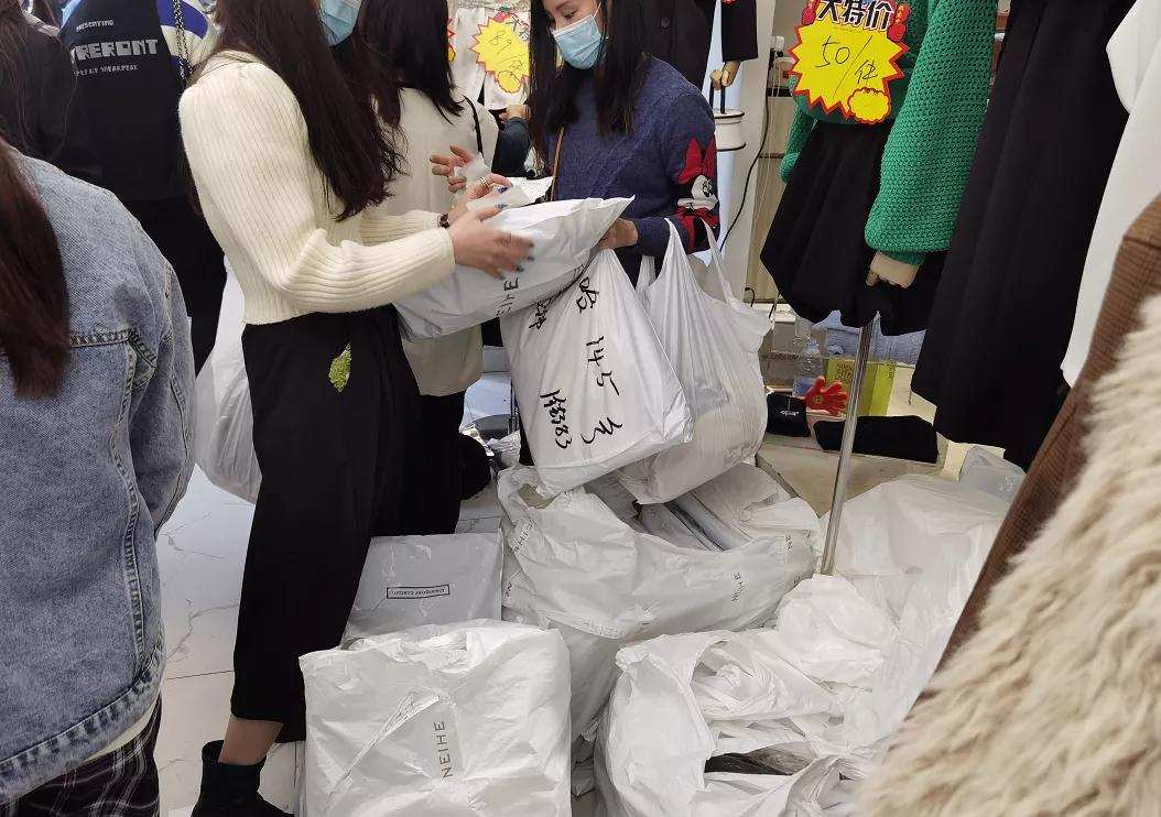 她们会拿着手拍板,站在店门口卖力的招揽客人,甚至大喊,“见钱就卖”,见到犹豫的客户,也会凑上去主动介绍,热情地询问,“带一件走吧?”