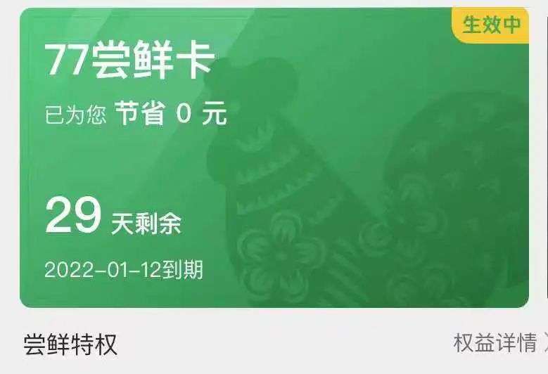 让用户免费体验 30 天,提前感受到“ 77 会员卡”所带来的实惠,以此来促使用户购买会员卡。