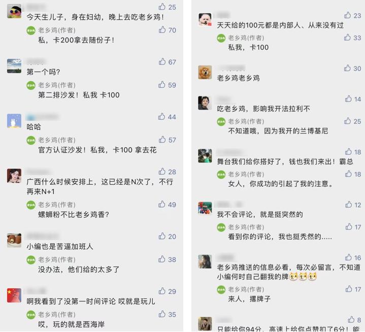 并且,服务号小编会对许多用户的留言进行回复,和读者互抛段子。说话不打官腔、风趣幽默、还喜欢和粉丝互动,这样的“人设”能让老乡鸡迅速拉近和用户的距离。