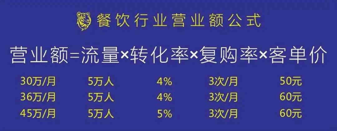 虎拾文化创始人@孙平 曾针对“营业额=流量 * 转化率 * 复购率 * 客单价”公式提出: