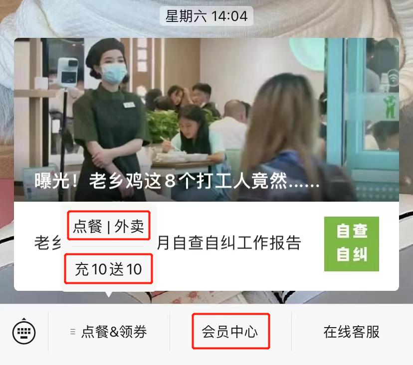 中式快餐在私域运营上普遍比较滞后,大部分餐饮店在让顾客扫码点餐、关注公众号之后就没有太多的运营动作了,老乡鸡算是行业里起步较早的品牌。