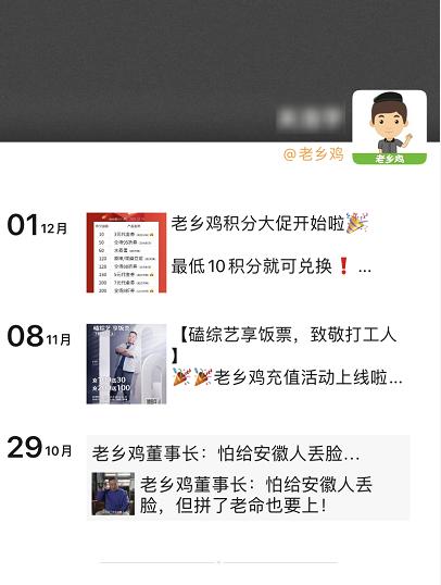 自 2020 年 2 月老乡鸡因为“老板手撕员工联名信”和“ 200 元办土味战略发布会”火了之后,近一两年来老乡鸡在公域平台的动作也是接连不断。