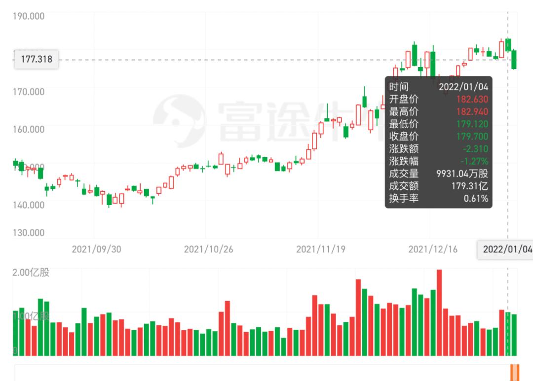 1月4日凌晨,苹果的股价达到182.88美元/股,总市值一度突破了3万亿美元,成为全球首家跻身于3万亿美元俱乐部的公司。