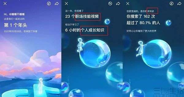 其中对于抖音推出的个人年度报告,网络中则有一个提问令人印象非常深刻。“抖音2021年度报告为什么突出教育和知识,几乎没有往年的一些娱乐化数据”,这无疑是由于其更侧重于对用户“知识获得感”的展现。而在近期,抖音方面也正式上线了学习频道,并将其作为首页一级入口。