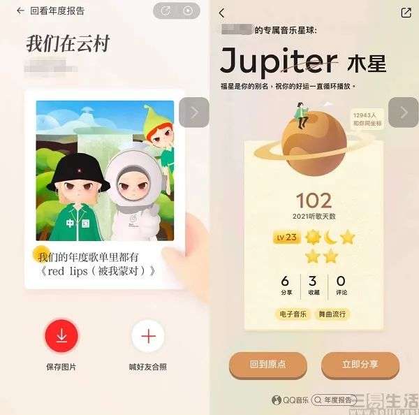 值得注意的是,比起往年的这一报告,今年许多平台也进行了诸多创新。例如,网易云音乐在结尾就增加了音乐匹配度更高的“村友合照”、QQ音乐则在总结的时候为用户分配了稀有度不同的“专属音乐星球”,豆瓣则在往年的基础上额外推出了“创建我的书影音TOP10”,而抖音则一改往年的娱乐化数据,增加了教育和知识类内容的统计。