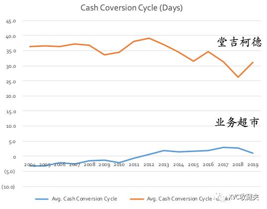 我们再看一下二者现金流,我在这里做了二者现金循环周期(cash coversion cycle,CCC)的一个对比。
