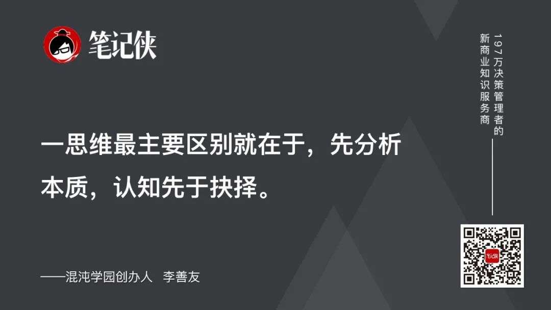 一思维最主要区别就在于,第一步不是先抉择,而是先分析本质,认知先于抉择。