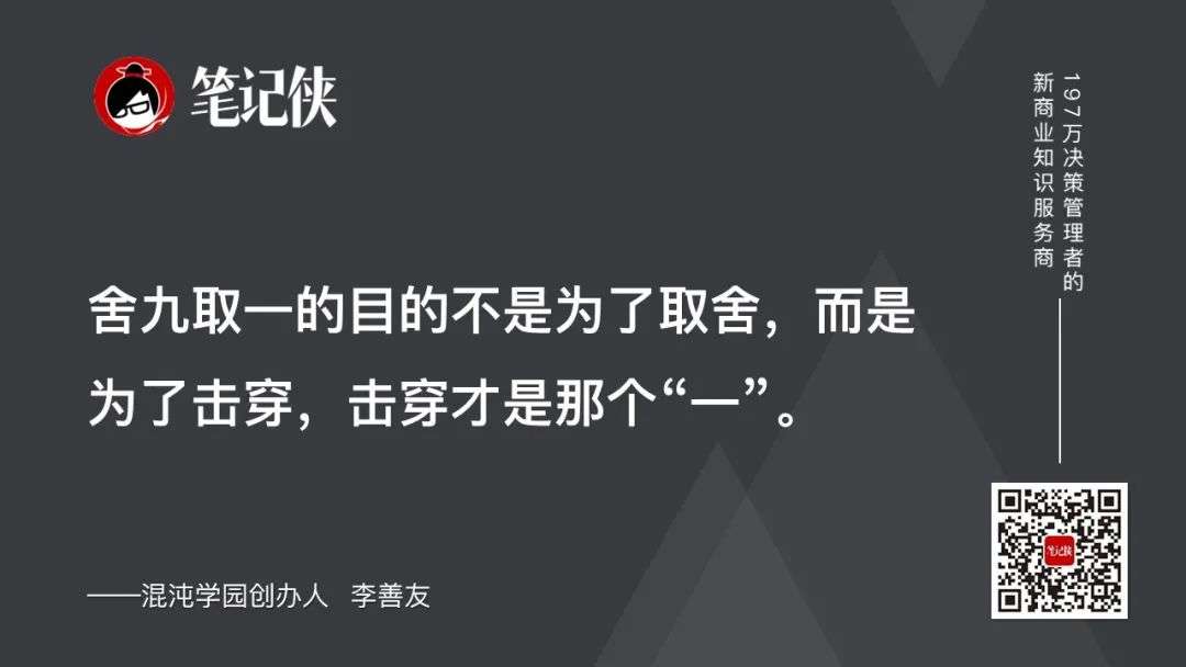 舍九取一的目的不是为了取舍,而是为了击穿,击穿才是那个“一”。