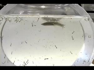 不过,最近有科学家发明了一种能遏制食蚊鱼扩张的“船新”方法——用机器鱼!这其实是一种比较新的生物防治方案,科学家们认为,食蚊鱼对生态造成巨大破坏的原因,并不单纯地在于它们出现在土著水体中,还在于它们缺乏捕食者的压力,才导致了它们的肆意妄为。就算仅仅带给它们对捕食者的恐惧,都能影响它们的行为,从而极大阻止它们的扩张。根据这种思路,科学家们根据食蚊鱼的天敌之一——大口黑鲈的形象制作了一个机器鱼,并将其与食蚊鱼放在一起。
