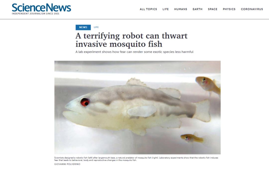 机器鱼与实验中的食蚊鱼图/sciencenews网页截图