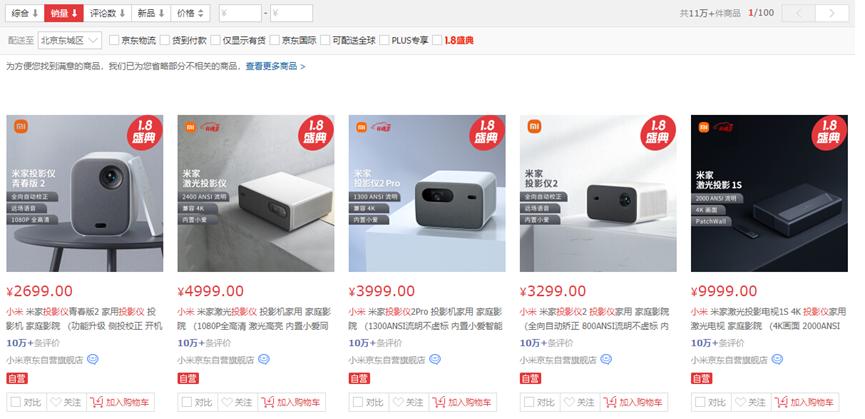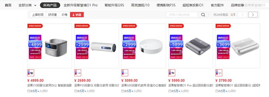 来源:JMGO坚果京东自营旗舰店 小米京东自营旗舰店
