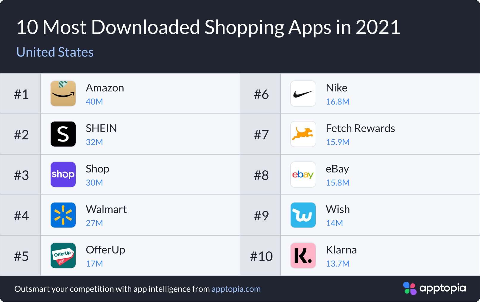 超越亚马逊,Shopee和SHEIN位居2021年购物应用全球下载量冠亚军