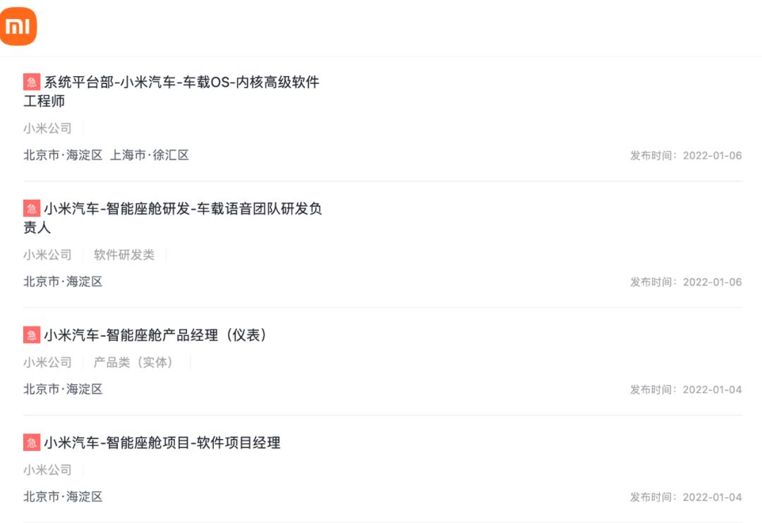 小米不是没有想过重新组建一只单独的汽车软件开发团队。在小米招聘官网上,目前汽车相关岗位仍在招聘中,并且显示都是“急招”。不过,最近新发布的岗位涉及“系统平台”、“智能座舱”等,尤其以智能座舱为主。这已经和今年上半年,招聘岗位涉及数据平台、车载基础架构、毫米波算法、前端平台开发等与自动驾驶有关的岗位有很大不同。