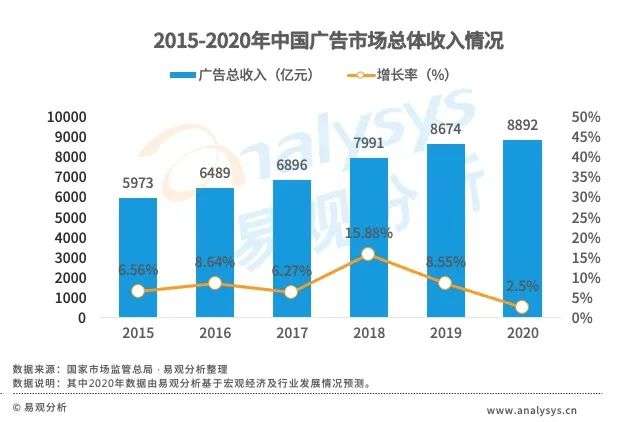 宏观经济下行叠加疫情冲击,2020年广告市场增速放缓