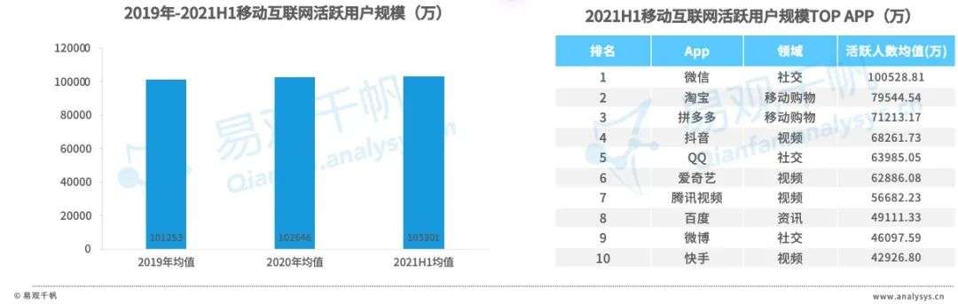 2021年上半年,中国移动互联网平均月度活跃用户规模达10.33亿人,用户增速整体放缓,存量下竞争不断加剧。