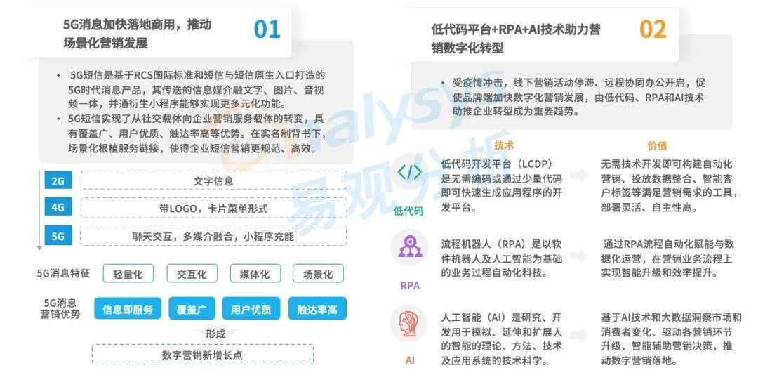 技术发展与推动:5G消息、低代码、RPA 等驱动数字营销创新