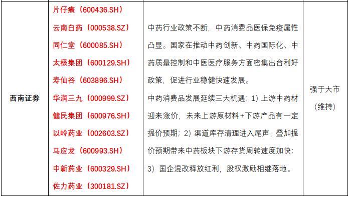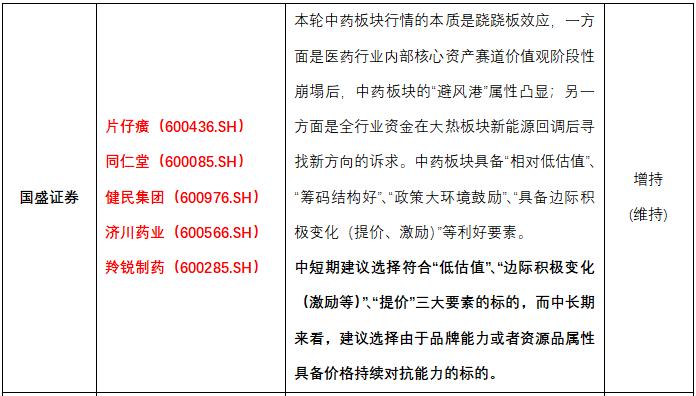 此外,同仁堂、太极集团、华润三九等多家中药企业近期均发布产品提价通知,多家机构认为中药企业有不同程度的价值重估机会,看好低估值、具有品牌定价能力的龙头标的。