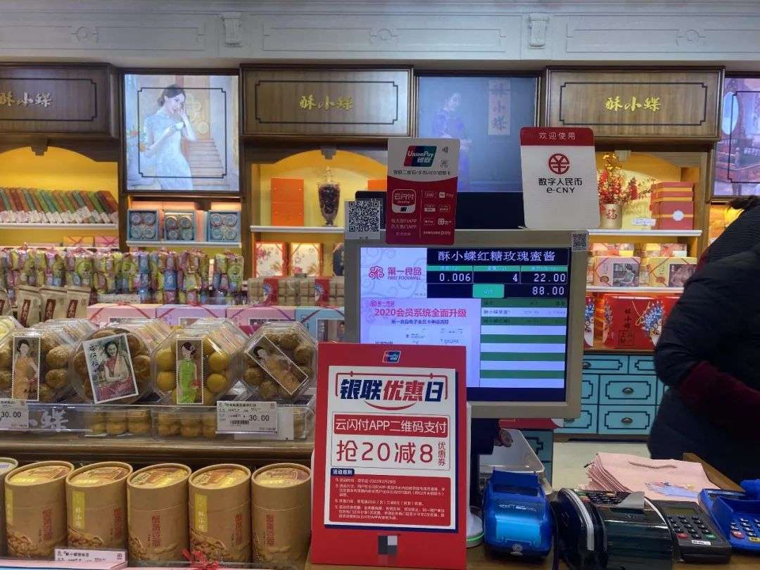 “我们支持数字人民币,你可以亮出数字人民币钱包二维码。”坐落在南京路步行街中段的一家沈大成窗口店员告诉《IT时报》记者,说着拿起POS机,几下便完成了收款,以上购买过程同微信支付、支付宝等常用第三方支付流程并无不同。