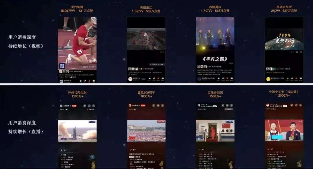 最后看直播案例的展示,基本和短视频一样,选择的是国民性大事件,比如“神舟12号发射”“孟晚舟归国”等这类特殊性事件直播展示,并不具备普适性。