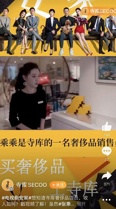 有着“奢侈品电商第一股”光环背景的寺库,靠做二手奢侈品寄卖发家,2020年还通过热播剧《安家》里的“作精”张乘乘小火了一把。在《安家》里演员张萌所饰演的张乘乘虽然是个刁蛮人性的出轨人设,但作为寺库上海门店的销售,其“一眼鉴包”的技能却俘获了不少粉丝。