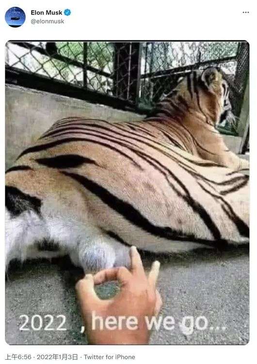 对于特斯拉2021年的成绩,身为特斯拉CEO的马斯克明显是满意的,在特斯拉公布年终成绩不久,他就在社交平台上更新了推文,并表示,“2022,here we go。”众所周知,2022年是中国传统的虎年。此时马斯克更新推文是不是意味着2022年对特斯拉来说是极其重要的一年,如果不能虎口夺食那就有可能完蛋?至于是不是这样?接下来我们好好分析。