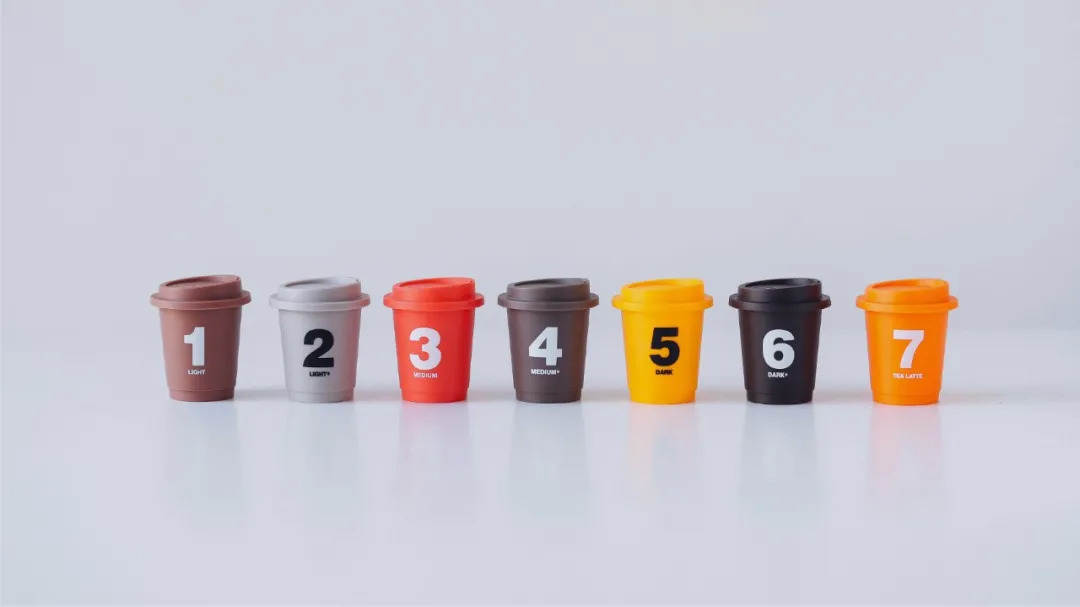不同于传统袋装速溶咖啡,三顿半打造出的是“视觉造型差异化”:高色彩区分度的精致迷你杯装在透明的包装盒里,标注着0—7的数字,由小到大的数值依次对应由浅至深的烘焙度,颜色鲜艳抢眼,不同的颜色和数字的直接对应,将咖啡由酸至苦的口味符号化,让用户更直观地了解产品分类。