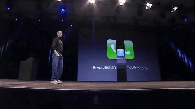 这3个图标转了两圈之后,台下的观众终于意识到,颠覆整个手机行业的产品要来了。